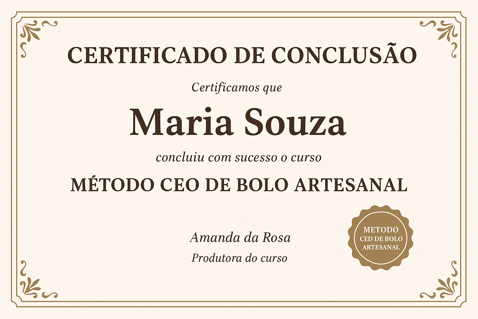Você receberá o acesso a CEO de Bolo Artesanal Por EMAIL. Pode ser um curso online, um ebook, uma série de videoaulas, um serviço, evento, etc. O conteúdo será acessado ou baixado através de um computador, celular, tablet ou outro dispositivo digital.